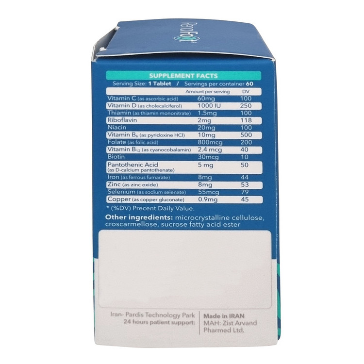 ترکیبات: شامل ویتامین سی، ویتامین دی، تیامین، ریبوفلاوین، نیاسین، ویتامین ب6، فولات، ویتامین ب12، بیوتین، پانتوتنیک اسید، آهن، زینک، سلنیوم و مس