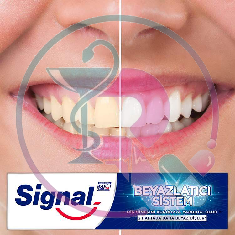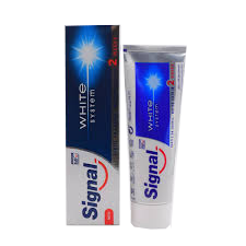 همانگونه که از نام خمیردندان سیگنال white system پیداست، این محصول یک سفید کننده است. ترکیبات این محصول در کنار سازگاری با مینای دندان به سفید کردن ملایم آن میپردازد. پس از ۲ هفته استفاده از سیگنال white system لکههای حاوی رنگدانه، مانند لکهی قهوه و سیگار از روی دندانها از بین میروند. استفادهی مستمر وایت سیستم مینای دندان را محافظت و از تشکیل لکه بر روی دندان جلوگیری میکند.