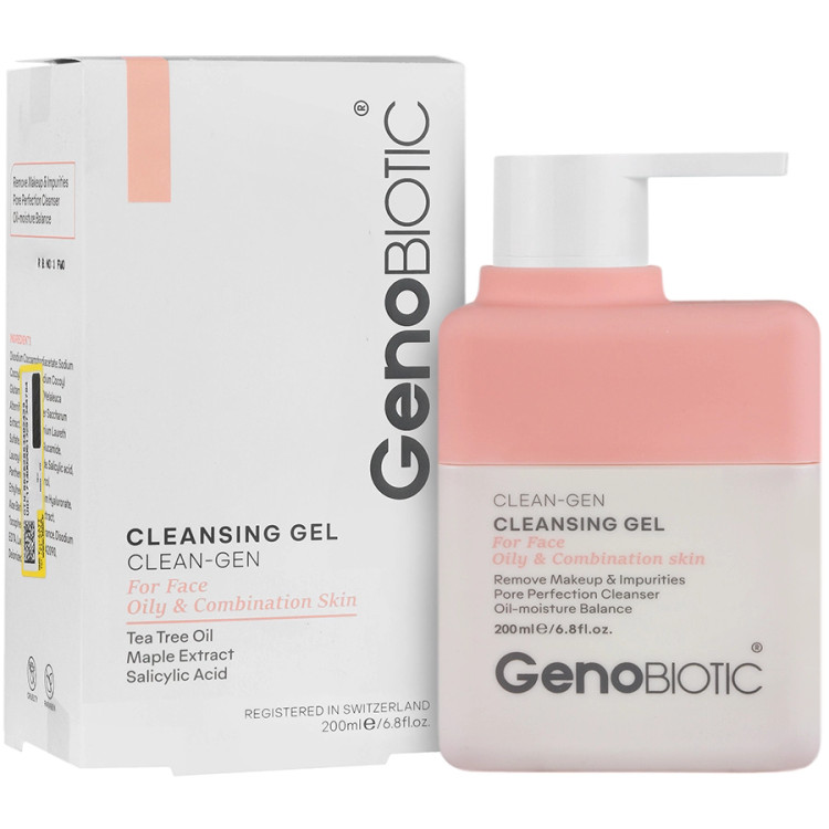 ژل شستشوی صورت پوست چرب و مختلط ژنوبایوتیک با داشتن ترکیبات موثر حاوی روغن درخت چای، عصاره افرا و سالیسیلیک اسید یک محصول تخصصی برای افرادی است که دارای پوست چرب یا مختلط هستند. ژل شستشوی صورت ژنو بایوتیک، عضوی از محصولات خانواده کلینژن است. این ژل حاوی ترکیباتی است که آلودگیهای پوستی، سلولهای مرده و مواد آرایشی را از منافذ پوست به خوبی پاکسازی کرده، در نتیجه باعث شستشو کامل پوست میشود.