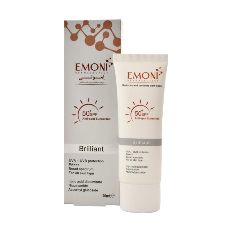 کرم ضد آفتاب بدون رنگ امونی spf50 مدل brilliant ، یک کرم ضد آفتاب بسیار سبک و مناسب برای انواع پوست است. این ضد آفتاب حاوی فیلترهای محافظتی SPF و PA+++ است که میتواند پوست شما را در برابر اشعههای UVB و UVA محافظت کرده و لطافت مورد نیاز پوست را به آن ببخشد. این محصول بسیار سبک بوده و به راحتی جذب پوست میشود. همچنین، این محصول حاوی مواد موثر ضد لک مانند کوجیک اسید دی پالمیتات (ضد لک و روشن کننده)، نیاسینامید (روشن کننده و آنتی اکسیدان)، آسکوربیل گلیکوزاید (ویتامین C پایدار شده) (روشن کننده و آنتی اکسیدان) است. از دیگر ویژگیهای مثبت این محصول میتوان به عدم ایجاد لکههای سفید روی پوست و عدم ایجاد حس سنگینی و چربی بر روی پوست پس از استفاده اشاره کرد.