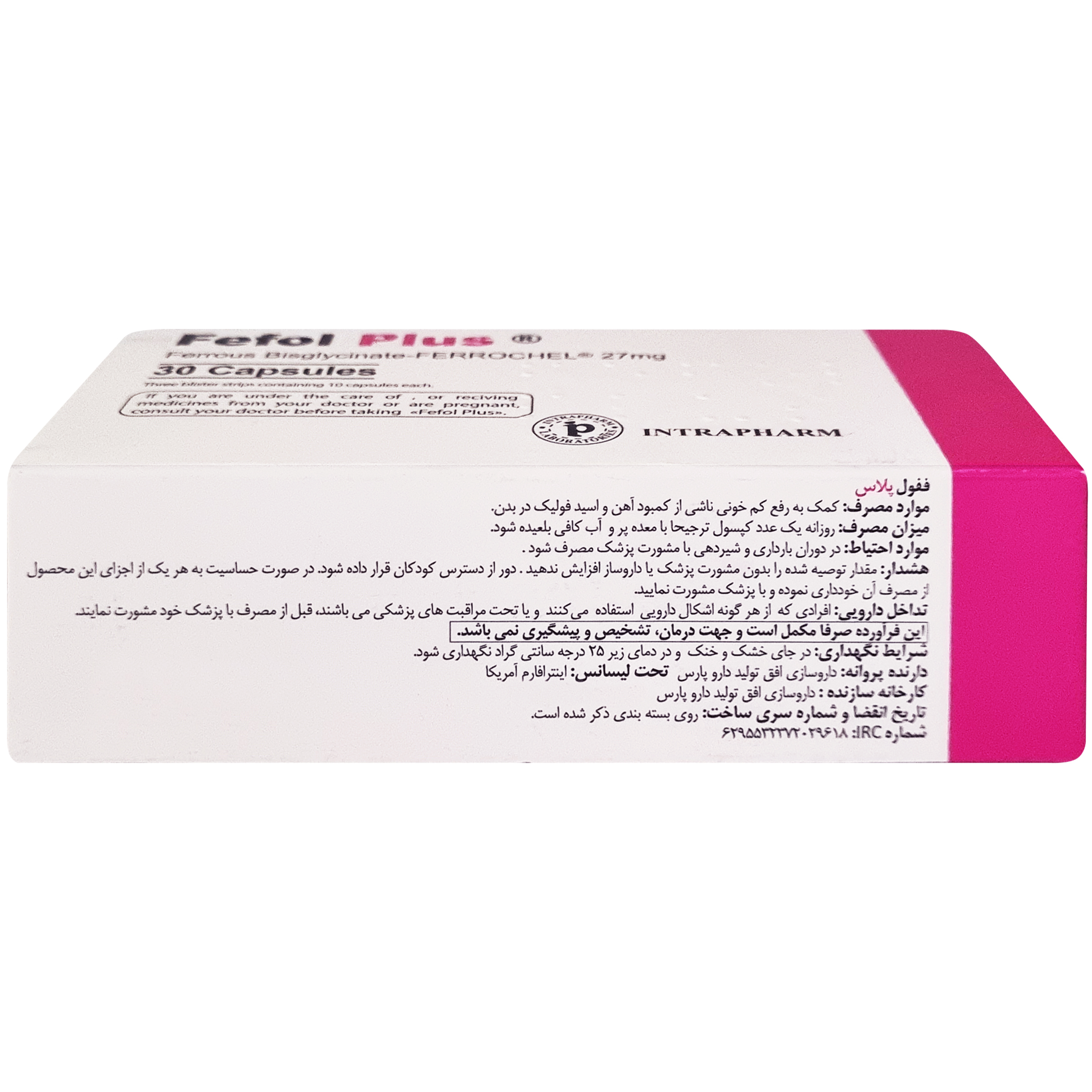 ففول پلاس به ازای هر کپسول خود 27 میلی گرم آهن المنتال (خالص) تامین می کند.