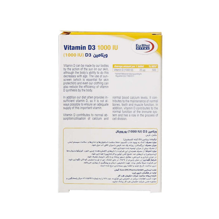 قرص ویتامین D3-1000 واحدی بسته 60 عددی