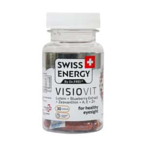 کپسول ویژیوویت سوییس انرژی ترکیبی است از لوتئین، زیگزانتین، ویتامین A و E، عصاره بلوبری و زینک. این ترکیبات برای سلامت بینایی بسیار مفید بوده و طبق تحقیقات بسیاری اثرگذاری آنها به اثبات رسیده است. کپسول ویژیوویت سوئیس انرژی به شکل کپسولهای آهسته رهش حاوی پلتهایی است که ماده موثره را به تدریج آزاد میکنند، به گونهای که باعث جذب بهتر فراورده و کاهش عوارض میشود. یکی دیگر از مزیتهای ویژیو ویت سوییس انرژی این است که چشم را در برابر فاکتورهای منفی میحط زیست و رادیکالهای آزاد محافظت میکند. مصرف این مکمل در زوال لکه زرد ناشی از سن، آب مروارید، افزایش سرعت بهبود بعد از اعمال جراحی لیزر عیوب انکساری چشم، گلوکوم، رتینوپاتی ناشی از دیابت، پرفشاری خون و شب کوری کمک کننده خواهد بود.