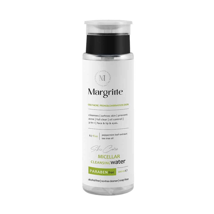 میسلار واتر 3 در 1 پوست چرب و مختلط مارگریت به طور موثر آرایش، سبوم و آلودگیهای پوست را پاک کرده و با تنظیم ترشح چربی، از ایجاد آکنه پیشگیری میکند. فرمولاسیون این محصول فاقد الکل، پارابن و مواد صابونی است و نیازی به آبکشی ندارد. همچنین به کار رفتن ترکیباتی همچون سالیسیلیک اسید و روغن درخت چای باعث خاصیت آنتی اکسیدانی بالای این میسلار واتر شدهاند که به کاهش التهابات پوستی کمک میکند. خوشبختانه در میسلار واتر 3 در 1 مارگریت مناسب پوست چرب هیچ گونه ترکیبات حساسیت زا به کار نرفته است و افراد میتوانند بدون نگرانی از این محلول به صورت روزانه استفاده نمایند.