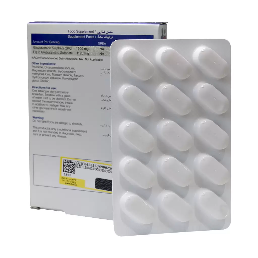 کارتیژن تحت لیسانس شرکت بایوپلاس هند و در داروسازی کیش مدیفارم تولید شده است و شرکت آبادارو طب دارنده پروانه ساخت آن میباشد. کارتیژن مکس مکمل تک جزئی گلوکزآمین بوده که به حفظ سلامت مفاصل و غضروف ها، بهبود انعطاف پذیری مفاصل، ترمیم غضروفها در بیماران مبتلا به آرتروز، کاهش درد، خشکی و التهاب مفاصل موثر عمل میکند. هر بسته قرص کارتیژن مکس مناسب استفاده به مدت 30 روز است.