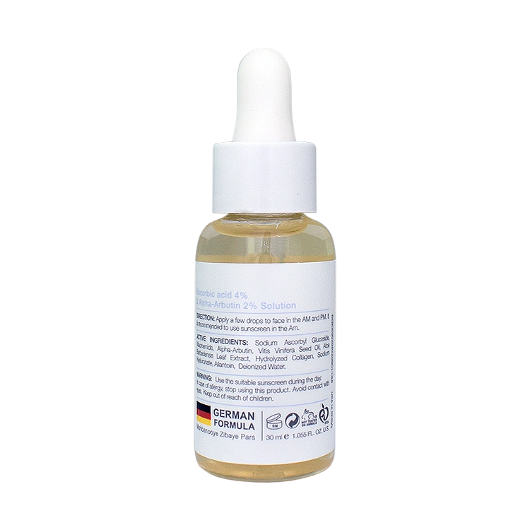 آسکوربیک اسید در واقع شکلی از ویتامین C است که خاصیت آنتی اکسیدان قوی دارد. این سرم با داشتن ویتامین C و خاصیت آنتی اکسیدانی آن، در رفع و کاهش خطوط و چین و چروکهای پوست موثر است. آلفا آربوتین نیز یک ترکیب گیاهی فعال است که موجب از بین رفتن لکهای ناشی از جوش و روشن تر شدن پوست میشود. ترکیب این دو ماده برای شما پوستی صاف و جوان به ارمغان میآورد.
