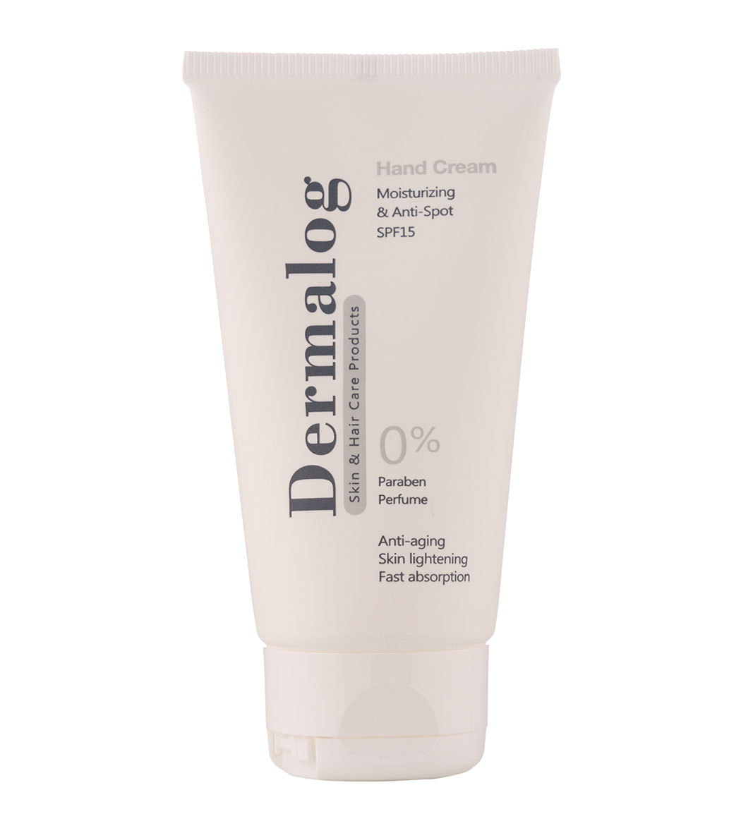 کرم مرطوب کننده پوست دست حاوی ضد لک با SPF15 درمالوگ 50 میلی لیترDermalog Moisturizing And Anti Spot SPF15 Hand Cream 50ml؛ حاوی ترکیبات رطوبترسان، مغذی و ضد لکی همچون؛ نیاسینآمید، 4-بوتیل رزورسینول، توکوفریل استات، سدیم آسکوربیل فسفات، آلانتوئین، پانتنول، بیزابولول و هیالورونات سدیم است که مرطوبکننده و نرمکنندهی پوست دست و آبرسان است.