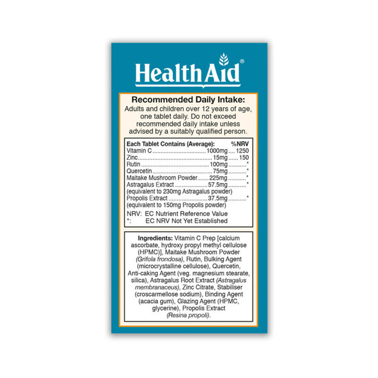 دیدن محصولات مرتبطقرص وینترویتس هلث اید حاوی قارچ مرغ چوب، ویتامین C، کوئرستین، روی، بره موم و گون است که برای کمک و حمایت طولانی مدت از بدن در ماه های زمستان، زمانی که سیستم ایمنی بدن ضعیف شده و نیاز به حمایت دارد، مورد استفاده قرار می گیرد. این قرص فاقد هر گونه مخمر، گلوتن، گندم، سویا، لبنیات، شکر، نمک، رنگ مصنوعی، نگهدارنده ها و طعم دهنده ها می باشد.